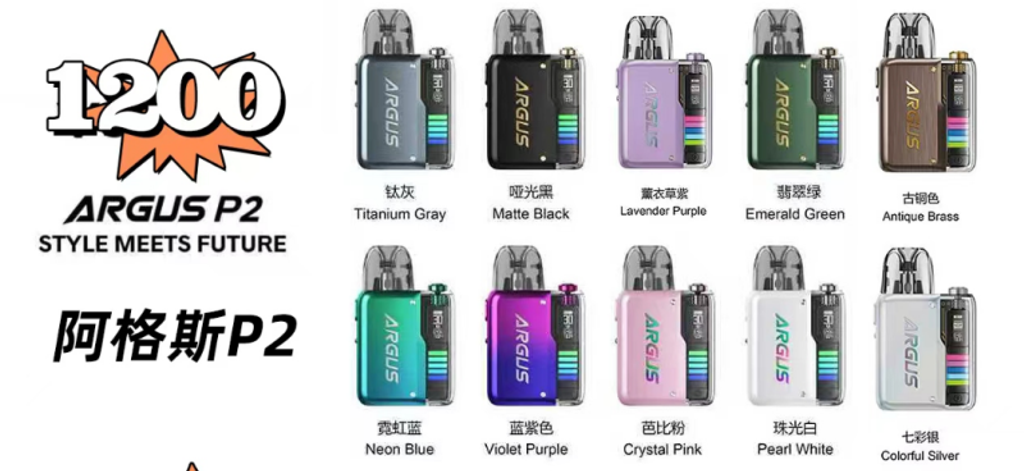 VOOPOO ARGUS P2 阿格斯P2大功率可調主機 | 30W+1000mAh電池 搭載全新ITO霧化芯技術,支持0.1Ω-3.0Ω電阻,適配RTA/RDA霧化器 雙髮絲線圈設計,煙霧量提升30%,口感還原度高達95% 智能溫控晶片+3秒快速點火,連續使用12小時不發熱 觸控屏+功率記憶功能,新手也能一鍵調節最佳口感VOOPOO ARGUS P2 未來外觀: Argus P2 擁有未來派的機械風格,散發出精緻和敏捷的氣息, 其鋁合金結構提供耐用性,同時保持時尚的外觀。 30W的輸出功率: 可調功率模式,豐富吸食體驗 輕鬆頂部填充: 新版本ARGUS P2內附新款頂部加油 0.54 吋 OLED 螢幕: 透過0.54吋OLED螢幕輕鬆查看套件參數,一目了然。 無盡流暢: 新推出的ARGUS 頂部填充墨盒與 ARGUS Pod 系列裝置相容 ARGUS P2 提供兩種模式: 電源模式 — 在功率模式下,使用者可以在已安裝線圈的限制內設定所需的瓦數,從而獲得個人化的電子煙體驗。 換檔模式 — 換檔模式提供三種功率設定:Eco(低)、Normal(中)、Sport(高)。 這些預設模式可滿足不同的電子煙偏好,並在需要時幫助節省電池壽命。 SPT模式— “將設備設置為最適合當前線圈的最高可能功率輸出,使用此模式可以獲得濃鬱的風味和豐富的雲朵” NOR模式— “以正常功率輸出提供最舒適的吸煙體驗” Eco模式— “將將功率輸出保持在最低限度,以節省電池電量,減少電子液體消耗。” 規格: 材質:鋅合金+PC 尺寸:121*26.4*15.2 毫米(標準) 116*26.4*15.2毫米(TPD) 輸出功率:5-30W 輸出電壓:3.2-4.2V 電池容量:1000mAh內建電池 內容物: Argus P2 x1 0.4Ω(頂部)空倉 x1 0.7Ω(頂部)空倉 x1 Type-C x1